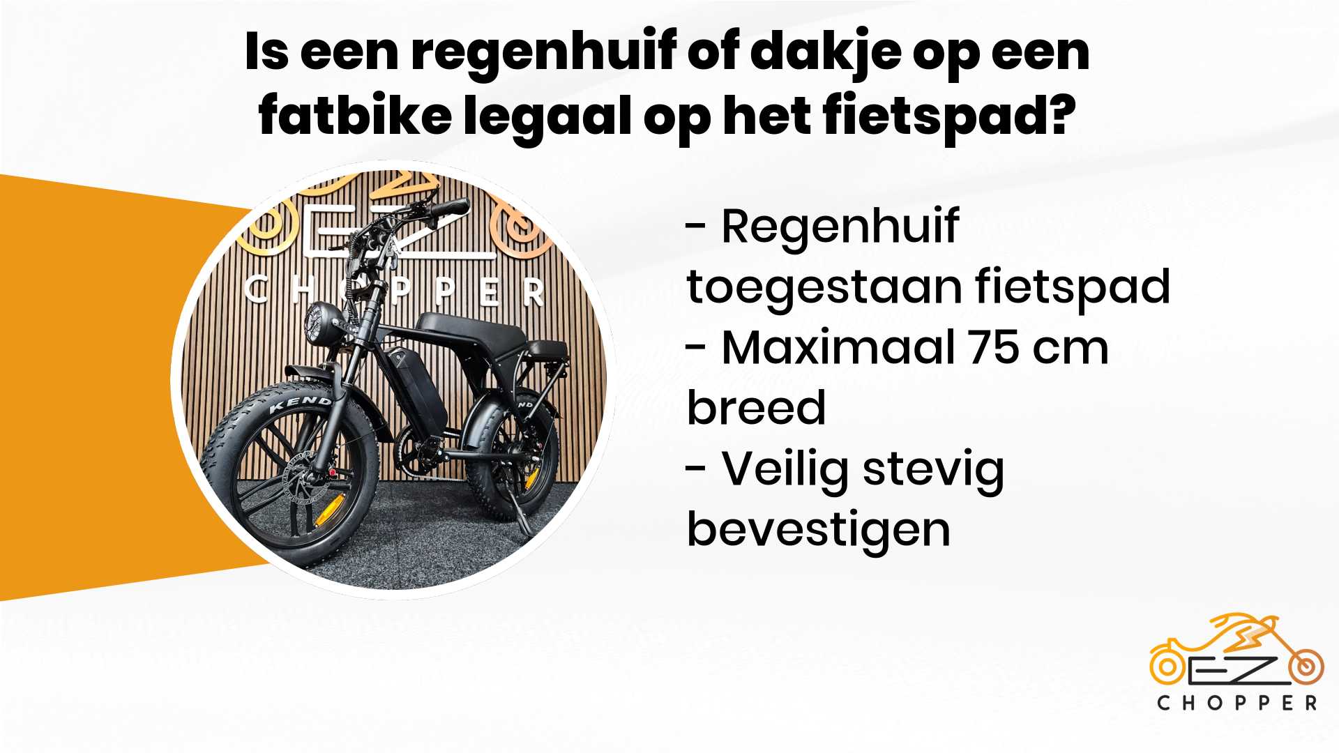 Samenvattend, ja, een regenhuif of dakje is toegestaan op een fatbike op het fietspad zolang het aan de regelgeving voldoet. Het biedt niet alleen comfort, maar zorgt er ook voor dat je het hele jaar door van je fiets kunt genieten. Heb je nog vragen of wil je graag met iemand spreken over het installeren van een regenhuif? Je kunt contact met ons opnemen via ez-chopper.nl.