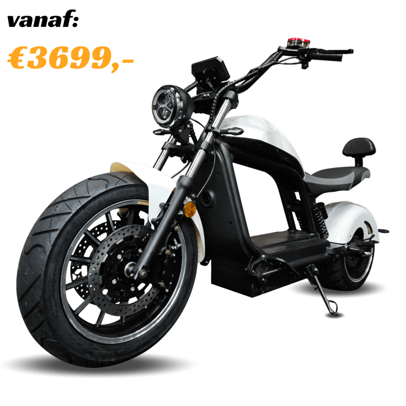 Een elektrische chopper heeft vele voordelen. Allereerst is het gewoon superstoer om ermee rond te rijden. Het zijn robuuste choppers met Harley Davidson-look maar dan in een elektrische uitvoering! Onze Harley scooters hebben een zeer korte oplaadtijd en kunnen via het motorblok direct achter het stuur worden opladen. Door de geavanceerde technologie achter deze e-choppers met Harley-look hebben ze een uitstekende wegligging en rijervaring. Versnellen en remmen wordt nog gemakkelijker door het gebruiksvriendelijke ontwerp; zowel op de rechte stukken als in de bochten. Een elektrische chopper heeft bovendien geen uitstoot en heeft weinig onderhoud nodig. Er is veel keuze in verschillende kleuren en modellen én je kunt ‘m helemaal naar jouw smaak personaliseren. Door zijn krachtige accu beweeg jij jezelf hiermee als een geruisloze bliksemschicht door het verkeer!